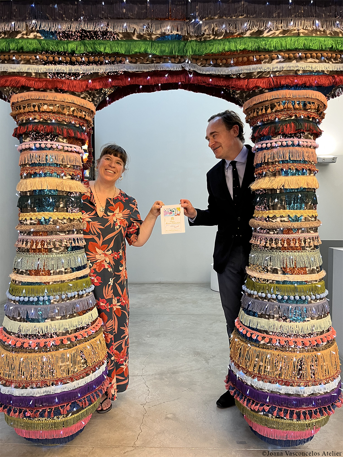 « Joana Vasconcelos utilise des matières du quotidien, traditionnelles comme la broderie ou le crochet pour créer des œuvres qui explorent de façon monumentale, baroque, provocatrice parfois, humoristique et engagée, des thèmes actuels comme le féminisme. Elle ancre le patrimoine artisanal portugais dans la modernité. Ce qui me plaît c’est ce lien entre l’art et l’artisanat car c’est ce que nous avons à Château Mouton Rothschild qui est à la fois le fruit d’un travail artisanal de haut niveau mais qui est aussi de l’art par ce côté unique, rare, et donc précieux de chaque millésime. »